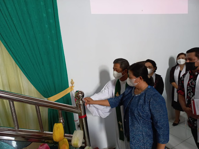Sulut24.com, MINSEL - Wakil Bupati (Wabup) Minahasa Selatan (Minsel) Pdt. Petra Yani Rembang, M.Th menghadiri sekaligus menjadi Khadim pada ibadah pentahbisan/peresmian mimbar Gereja GMIM Betel Kapoya, Minggu (11/07/2021).