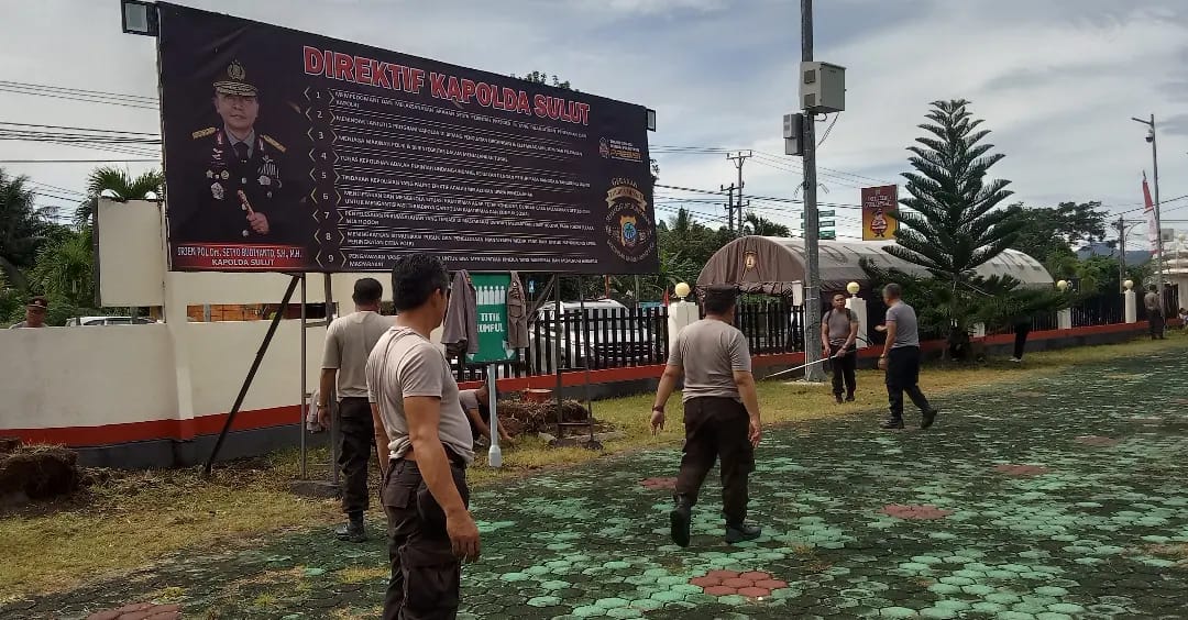Sulut24.com, MINSEL - Personel Polres Minahasa Selatan (Minsel) melaksanakan kegiatan korve kerja bakti membersihkan lingkungan perkantoran, Selasa (08/11/2022).
