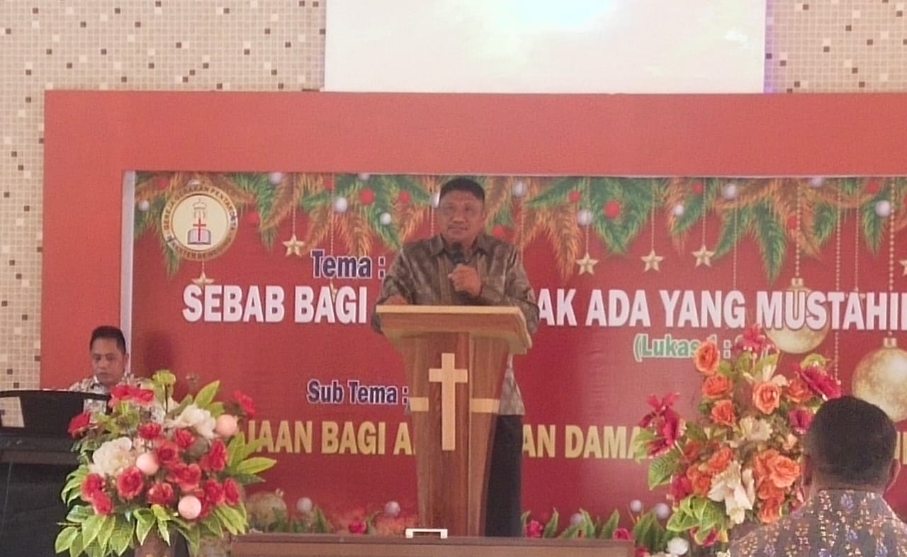 Kompol Kretsman kemudian menyampaikan beberapa poin penting terkait pesan kamtibmas. Ia mengimbau seluruh jemaat untuk senantiasa hidup berkenan kepada Tuhan dan menjauhi gaya hidup duniawi yang merusak, seperti mengonsumsi minuman keras.